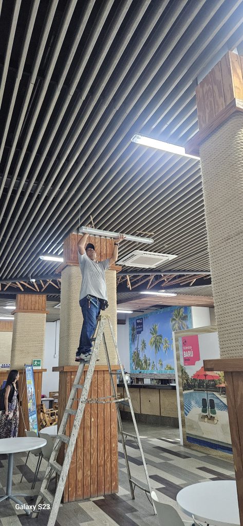 Mantenimiento Correctivo General de la Sala de Ventas, Red Eléctrica y de Iluminación, Cielo raso en Baño, Mantenimiento en Sanitarios y Cambio de Fluxómetros, Mantenimiento en Puerta Vidriera de Acceso Principal