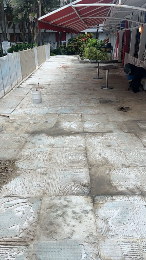 Mantenimiento Correctivo en Piso de Terraza Piscina Restaurante Internacional, Cambio de piso existente por Piso Porcelanato Antideslizante
